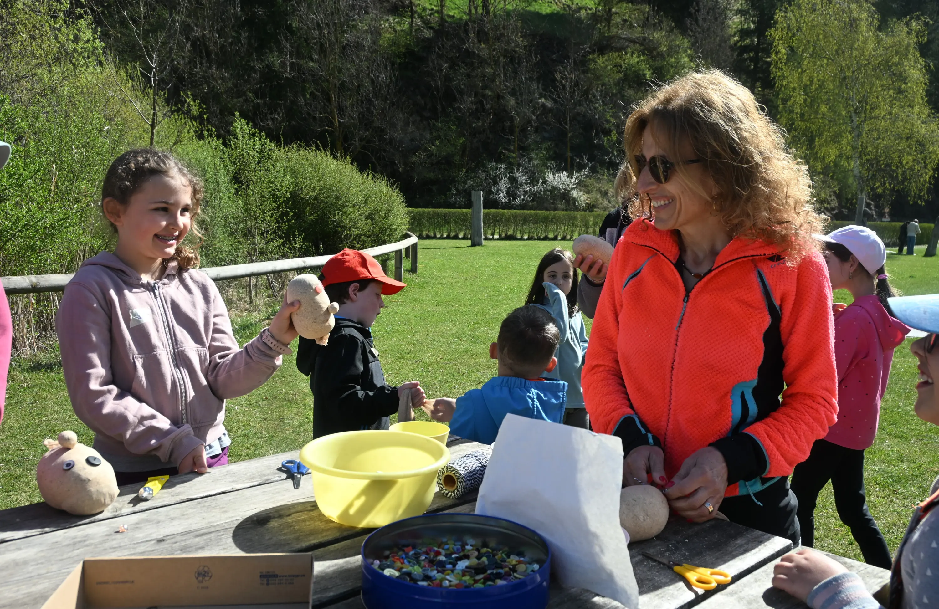 Una delle attività più apprezzate è stata la creazione della “testa di prato”: utilizzando una calza, terra e semi, i bambini hanno realizzato simpatici personaggi decorati con occhi fatti di bottoni. Con il tempo e l’acqua, da queste creazioni cresceranno dei veri e propri “capelli” verdi, rendendo l’esperienza ancora più sorprendente e duratura.